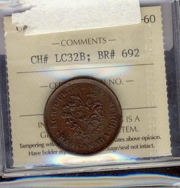 Breton #692, Charlton #LC32B, graded ICCS MS-60. Nice & srtong bouquet sou.