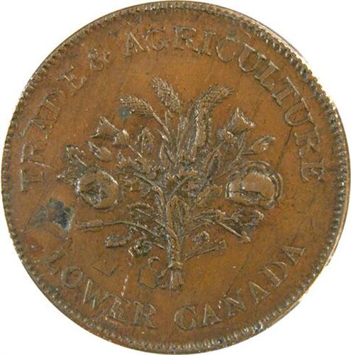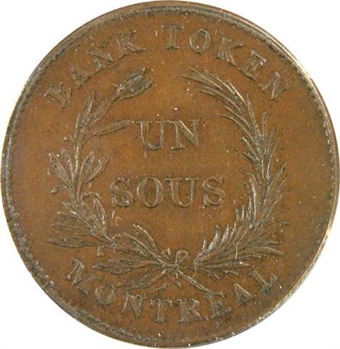 Canada Pre-Confederation Token. Breton 713, Un Sous - Bank Token Montreal, Curved Stem, CH LC-2A2, Cornwell Unc