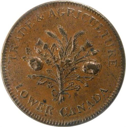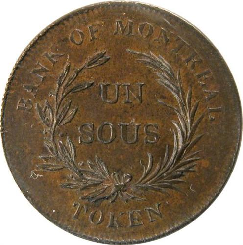 Canada Pre-Confederation Token. Breton 714, Un Sous - Bank Token Montreal, Short Stem, CH LC-3A1, ICCS MS-60. A sharp and nicely lustrous example
