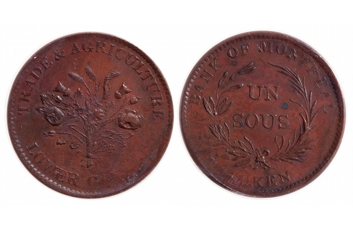 Breton-714. LC-3A2. Bouquet Sou. ICCS Mint State-60. A glossy brown token.