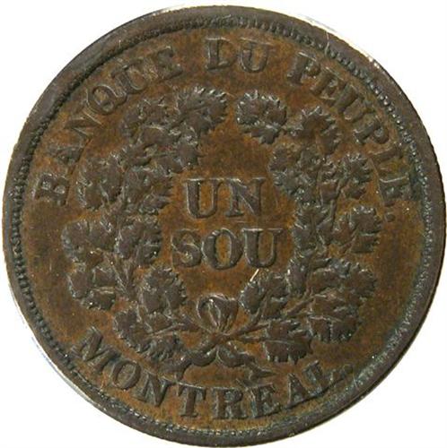 Canada Pre-Confederation Token. Breton 715, Un Sou - Banque du Peuple, Open Wreath, Reeded, CH LC-5A1, Cornwell EF. A sharply detailed example