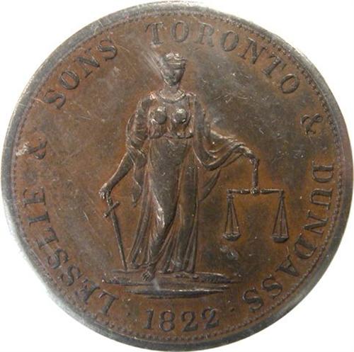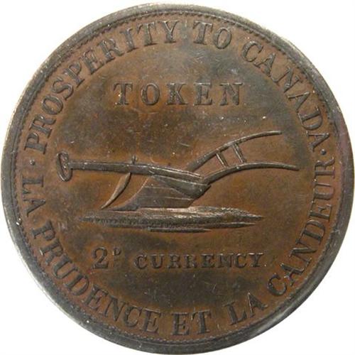 Canada Pre-Confederation Token. Breton 717, Leslie & Sons 2d Currency, CH UC-3, ICCS EF-45. A very sharp and nicely detailed example, which appears to have been fully struck, and it has considerable remaining lustre in the protected areas. Quite scarce this nice and rarely offered better