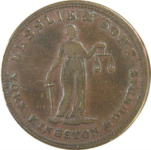Canada Pre-Confederation Token. Breton 718, Leslie & Sons Half Penny, No Comma, Handle to Period, CH UC-2A1, Cornwell VF+