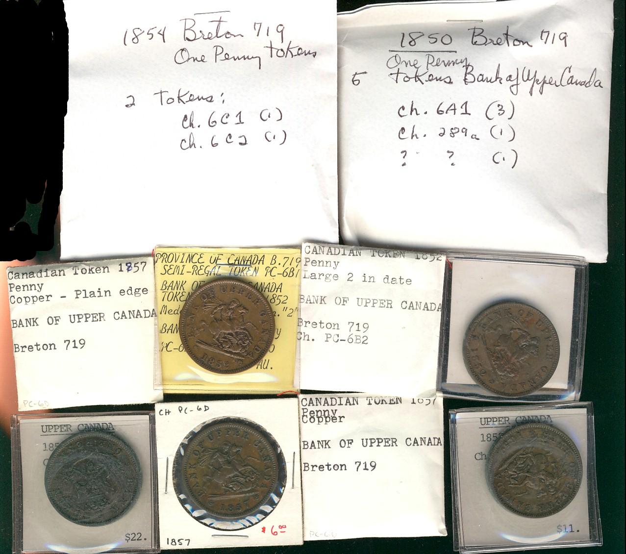 Breton 719 One Penny tokens. Lot of 15 coins, includes PC-6B1, 6B4, 6A1, 6C1 and others. Should be viewed.