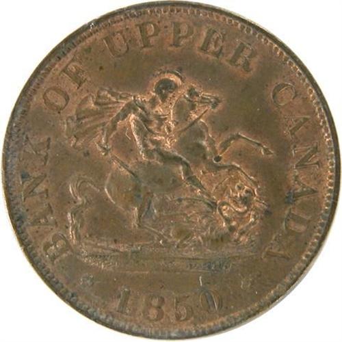 Breton 720 Bank of Upper Canada Halfpenny 1850 PC-5A, ICCS MS-60