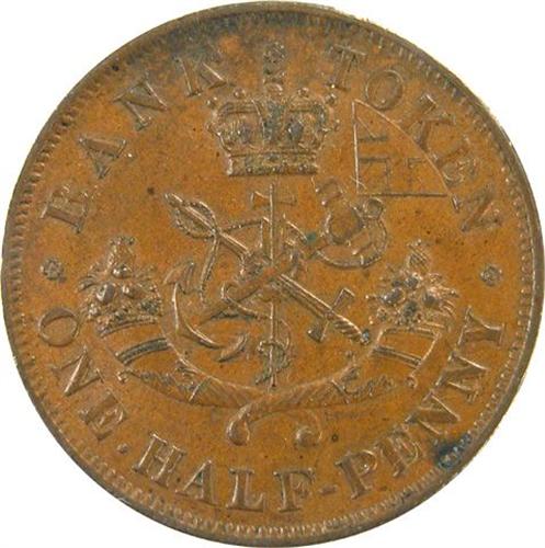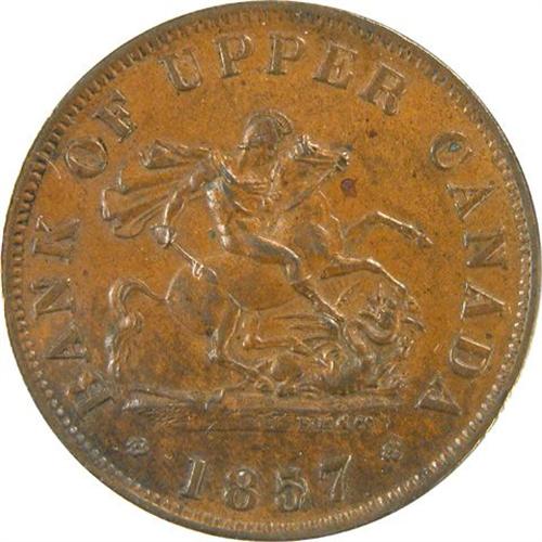 Canada Pre-Confederation Token. Breton 720, 1857 Bank of Upper Canada Half Penny, CH PC-5D, Cornwell Unc