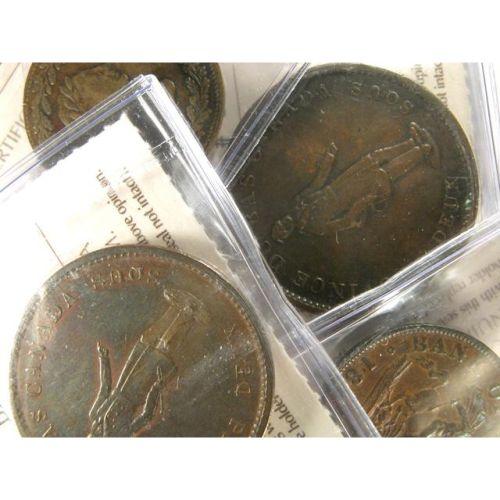 Breton 720 Bank of Upper Canada Halfpenny 1854 PC-5C1, ICCS AU-50. Plus Breton 521 LC-9A2, ICCS EF-40, Breton 521 LC-9B2, ICCS VF-20 and Breton 960 LC-48B1, ICCS VF-30. Total four tokens