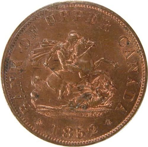 Breton 720, Half Penny 1852 Doubled Date, CH-PC 5B1, ICCS MS-63. A strongly lustrous piece with rather flawless surfaces that are over 50% red