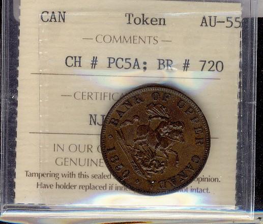 Breton #720, PC-5A ICCS AU55. Brown issue with light lustre.