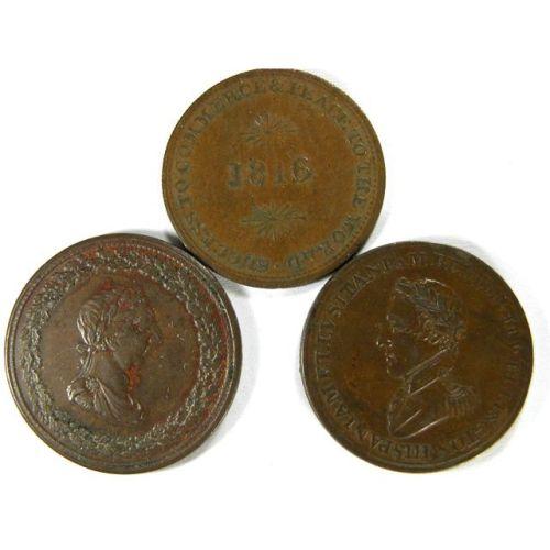 Breton 724 Upper Canada 1816 Brock, UC-6A1, Breton 960 Haliday 1812 Halfpenny, LC-46A2 and Breton 986 Wellington, WE-11B8. Total three pieces, EF