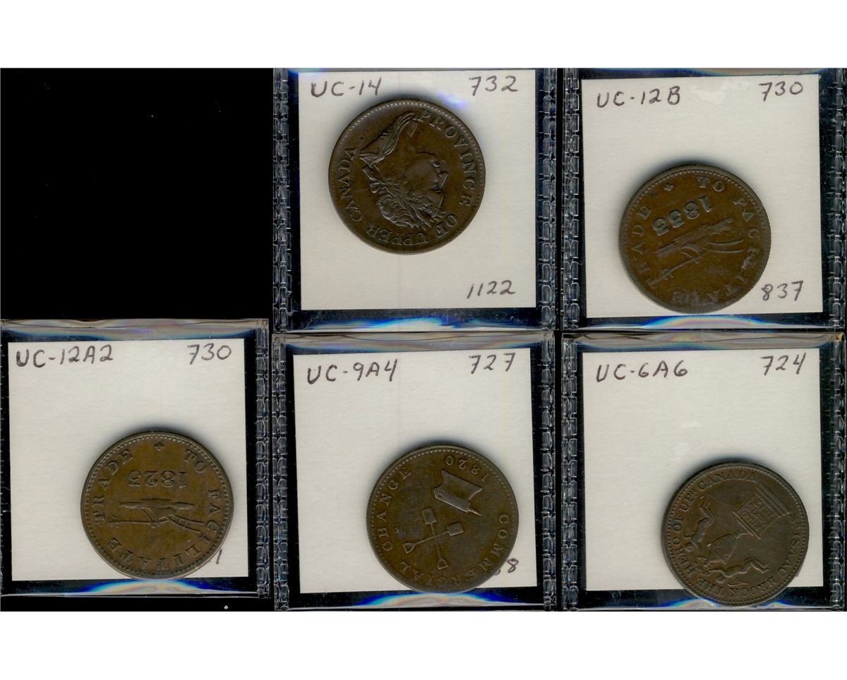 Breton 724 UC-6A6, UC-9A4, UC-12A2, UC12B & UC14. Lot of 5 tokens Fine to VF.