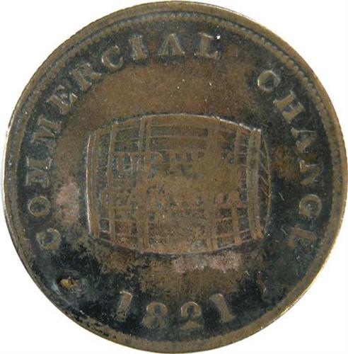 Canada Pre-Confederation Token. Breton 728, 1821 Commercial Change, Cask marked Upper Canada, CH UC-10, Cornwell VF+ holed. A small, incomplete hole near the rim at 5 oclock