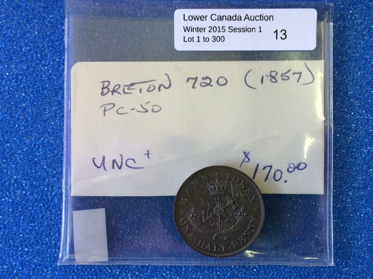 Breton 729 Bank of Upper Canada 1857 UNC.