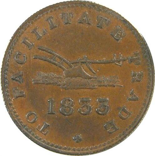 Canada Pre-Confederation Token. Breton 730, 1833 To Facilitate Trade, Coinage, CH UC-12B2, Cornwell AU+ Ex Jeffrey Hoare Auction February 1991, Lot 1554. Very sharp and near fully lustrous