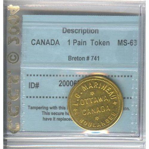 Breton # 741, graded CCCS MS-63. L.G. Marineau, Ottawa, Good for 1 Bread. Superbly lustrous.