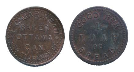 Astwood-1230j. L.G. Marineau. Ottawa. 1 Loaf. Copper. Period after bread variety. AU.