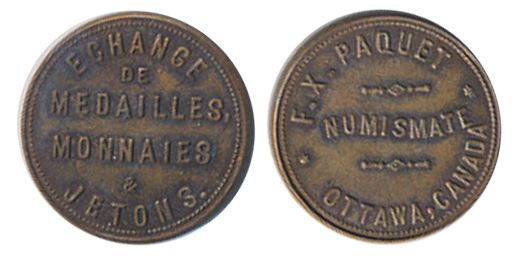 F.X. Paquet. Numismatist. Ottawa, Canada. 10.8 gms. 30mm. Unc.