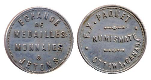 F.X. Paquet. Numismate. White metal. AU.