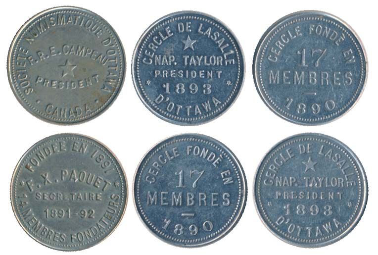 Societe Numismatique. Ottawa. 1891-92. Nckel; Breton-827a. Ler-1526c. Cercle de LaSalle. Aluminum. (2 pcs.). Lot of three (3) tokens, all AU.