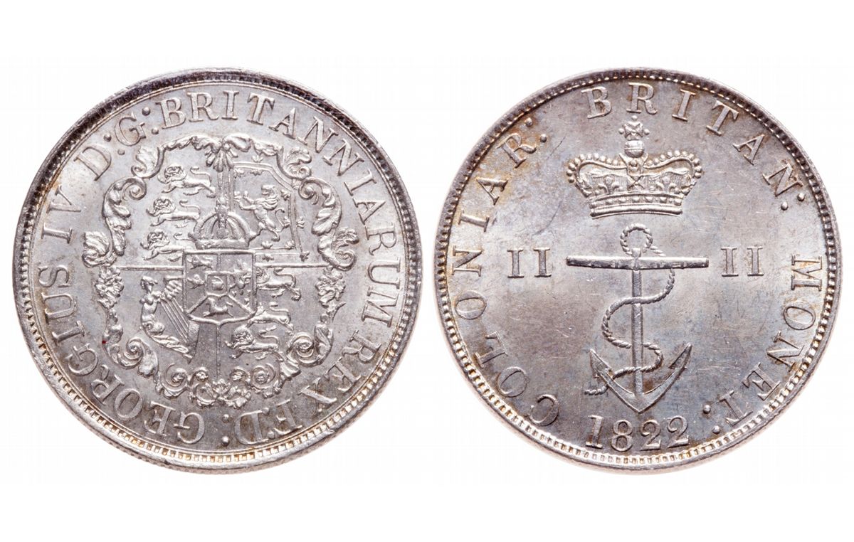 Breton-857. Anchor Money. Half Dollar. 1822. 2 over 1 variety. ICCS graded Uncirculated. High grade for issue, virtually brilliant, with plenty of lustre and only trace golden toning. Ex. L. Carney.