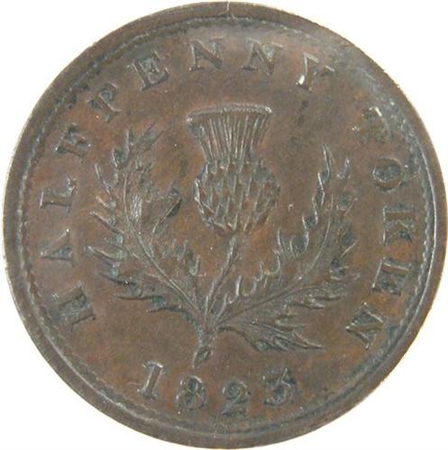 Canada Pre-Confederation Token. Breton 867, 1823 Nova-Scotia, Half Penny, Fourteen Leaves, CH NS-1A3, ICCS EF-40