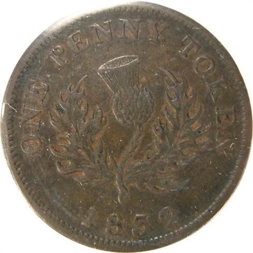 Breton 870, 1832 Nova Scotia Penny, Bow Touching Head, CH NS-2B3, ICCS EF-45