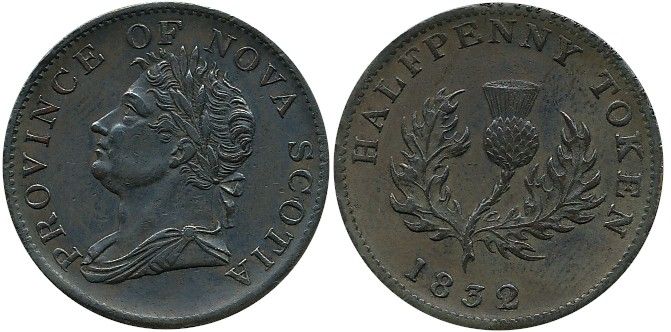 Breton 871, NS-1D3 1832 Thistle Token. Sharp AU issue.