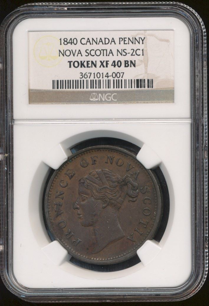 Breton 873 NS-2C1, NGC EF40. 1840 Thistle Token issue.