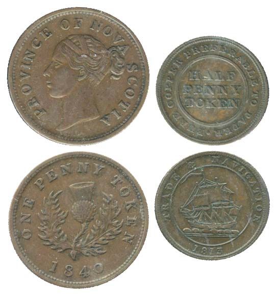 NS-2C1. 1d. 1840; Breton-965. NS-21A1. Lot of two (2) tokens, both Very Fine+.