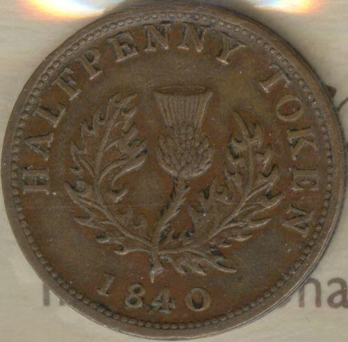 Breton 874, Charlton NS-1E2 ICCS certified EF-45. Victoria Halfpenny Token 1840, Medium "0" in date.