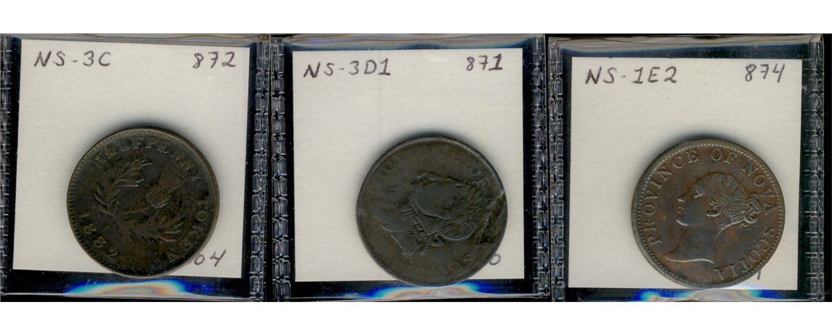 Breton 874. NS-1E2,871 NS-3D1 &872 NS-3C. Lot of 3 Thistle Tokens. VG to EF, all with issues.