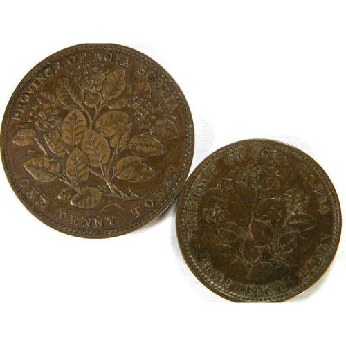Breton 875 Nova Scotia 1856 Penny, With LCW, NS-6A1, EF. Plus Breton 876 Nova Scotia 1856 Halfpenny, NS-A1, EF. Two pieces
