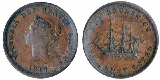 Breton-909. NB-2A. 1843. One Penny Token. ICCS Extra Fine-40.