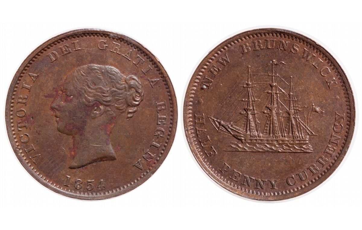 Breton-912. NB-1B. 1/2 Penny. 1854. Obverse spot or cor. Even tan colour. ICCS Mint State-60.