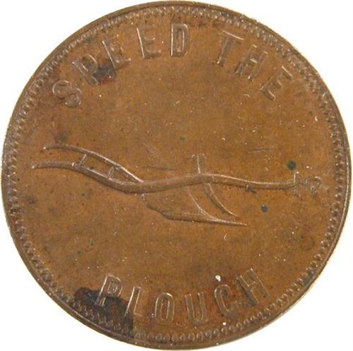 Canada Pre-Confederation Token. Breton 917, Speed the Plough, Hook Reverse, Medal, CH PE-5B1, ICCS AU-55. A very sharp piece with much remaining lustre