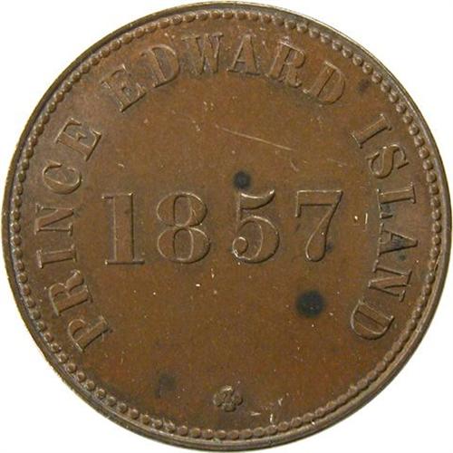 Canada Pre-Confederation Token. Breton 919, 1857 Prince Edward Island, Large Quatrefoil, Small AND, CH PE-7C3, Cornwell Unc. This is a fully struck and strongly lustrous example with rather flawless light brown surfaces