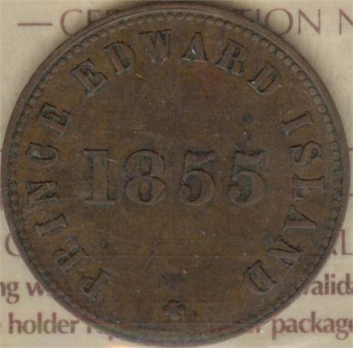 Breton 919, Charlton PE-7B1 ICCS certified VF-30. Self Government and Free Trade, 1855 Prince Edward Island. Top of "5" pointing to "S" of ISLAND.