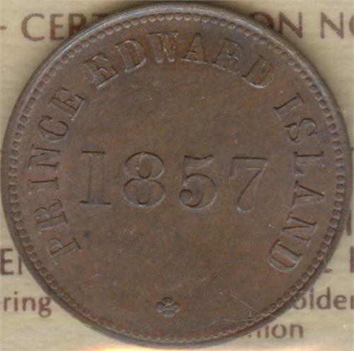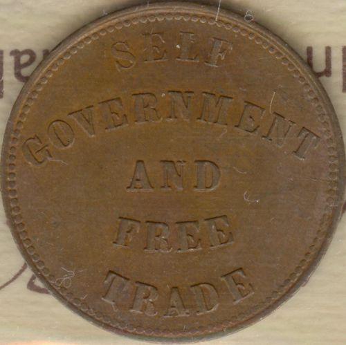 Breton 919, Charlton PE-7C1 ICCS certified MS-60. Self Government and Free Trade, 1855 Prince Edward Island. Large Quatrefoil, Large "AND", medal.