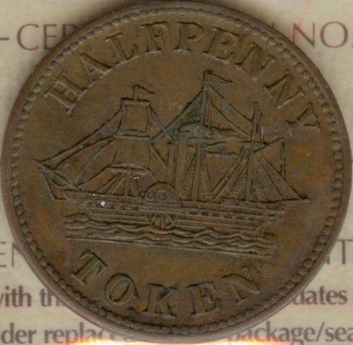 Breton 921, Charlton PE-8 ICCS certified EF-45. Fisheries and Agriculture, Halfpenny token.