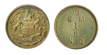 Breton-929. Hudson’s Bay Company. Eastmain. 1/8 Made Beaver. Brass. No punch mark. ICCS Mint State-63.