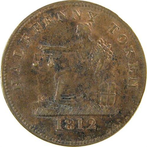 Canada Pre-Confederation Token. Breton 960, 1812 Imitation Tiffin Token, Clockwise Wreath, CH LC-48B2, TF-17, Cornwell Unc