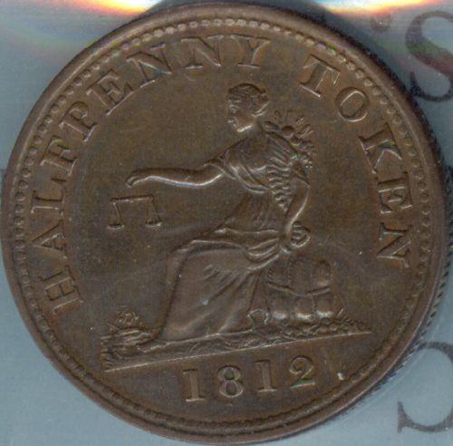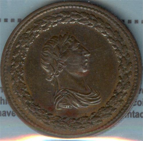 Breton 960, Charlton LC-46A1 CCCS certified VF-30. Thomas Halliday Tokens 1812-1814, "H" to right of bust, Rosette with four dots.