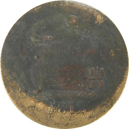 Breton 961, 1812 Imitation Tiffin Token, Clockwise Wreath, CH LC-48C2, Large Bust, Eight Chaplet Leaves, Left Hand on Vertical Cord, Four Pairs of Cannon Balls, TF-01, ICCS MS-60