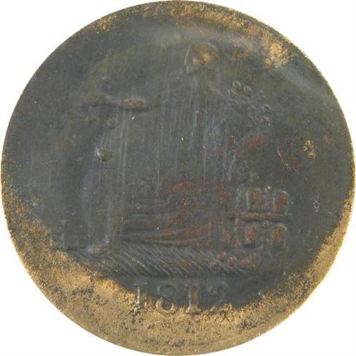 Canada Pre-Confederation Token. Breton 961, 1812 Imitation Tiffin Token, Clockwise Wreath, CH LC-48C2, Large Bust, Eight Chaplet Leaves, Left Hand on Vertical Cord, Four Pairs of Cannon Balls, TF-01, ICCS MS-60. This piece has the typical soft strike from crude dies