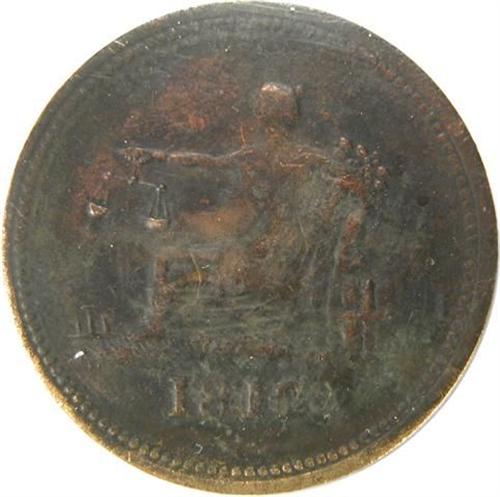 Breton 961, 1812 Imitation Tiffin Token, Clockwise Wreath, CH LC-48C2, Silly Bust, Nine Chaplet Leaves, Thighs Longer than Calves, Four Cannon Balls, Ingrahm TF-07, ICCS MS-60