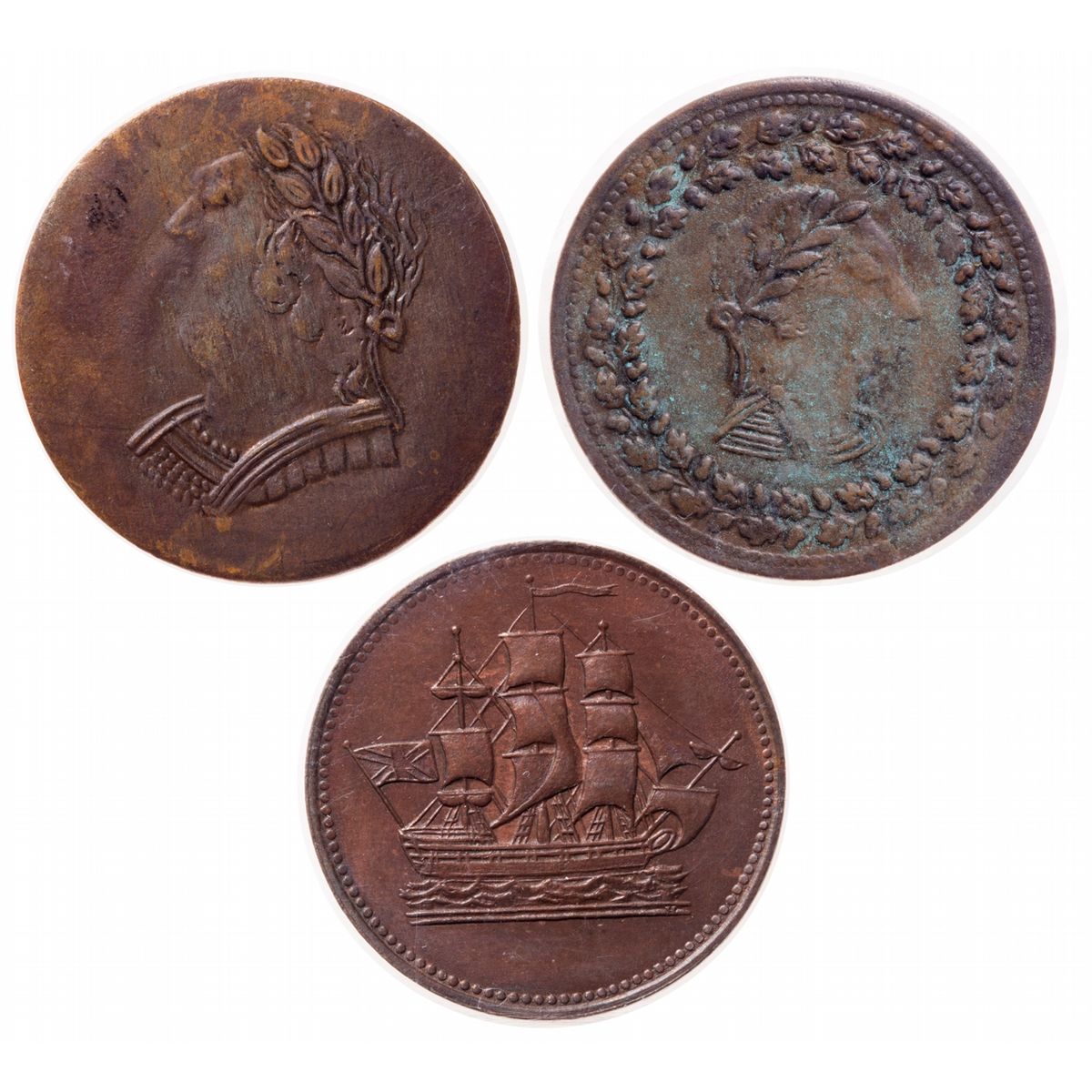 Breton-961. LC-48C2. ICCS Mint State-60; Breton-997. PE10-31. Lees-31. ICCS AU-55; Breton-1012. LC-60E1. ICCS Mint State-60. Lot of three (3) tokens.