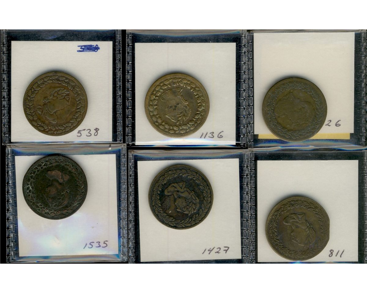 Breton 961 Tiffin Tokens, Lot of 6 examples Brass and Copper. Should be viewed. VG to EF for type.