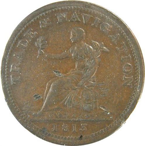 Canada Pre-Confederation Token. Breton 962, 1813 Trade & Navigation, CH NS-20A3, Cornwell EF. Several small digs in the fields