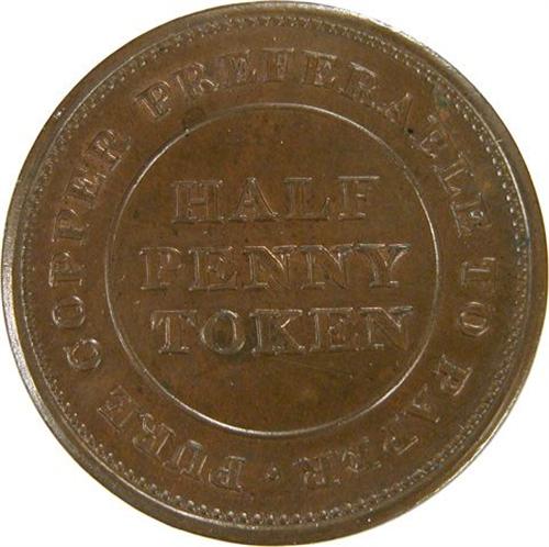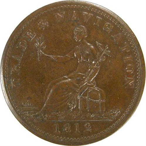 Breton 963, NS-19A 1812 Trade and Navigation Halfpenny, Uncirculated. A nice glossy brown example with traces of original red