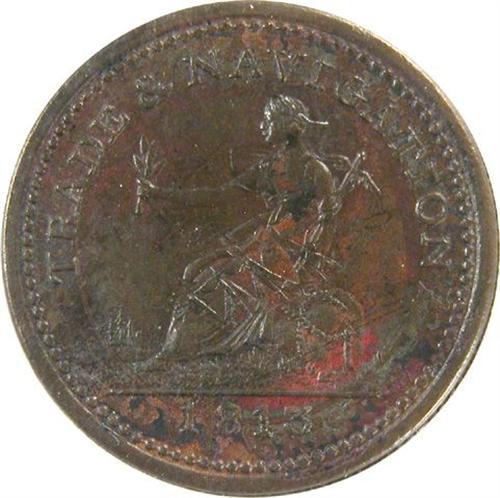 Canada Pre-Confederation Token. Breton 964, 1813 Trade & Navigation, CH NS-18, ICCS EF-40. A sharp example